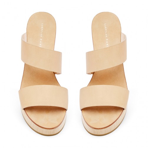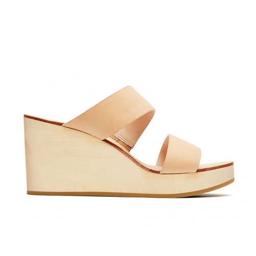 Double strap wedge sandal in natural vachetta 3.3in / 85mm wooden heel and rubber sole