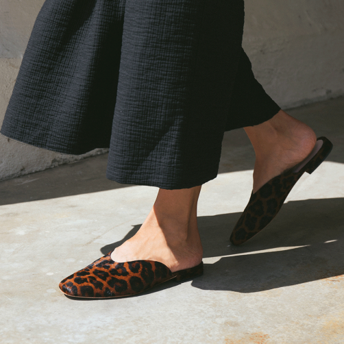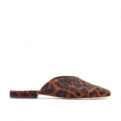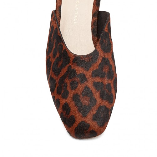 Square toe slide in leopard haircalf 0.6in / 15mm heel and leather sole